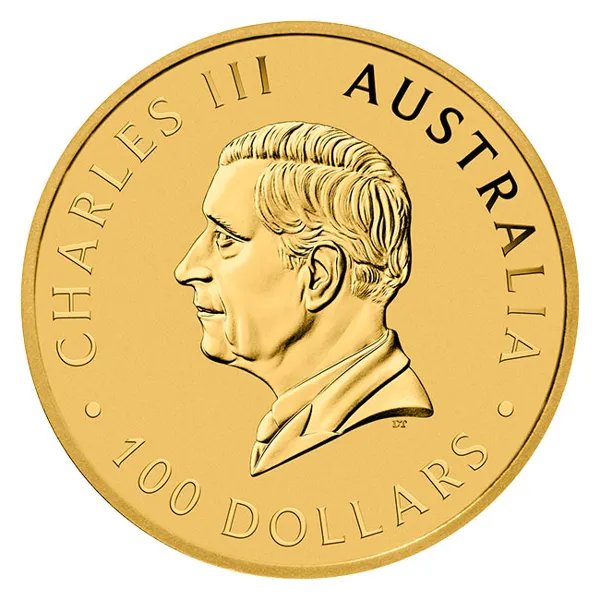 The obverse of the 2025 Gold Kangaroo Coin features the Perth Mint’s first-generation effigy of King Charles III. Designed by Dan Thorne, this left-profile portrait presents His Majesty without a crown, captured in stunning detail.